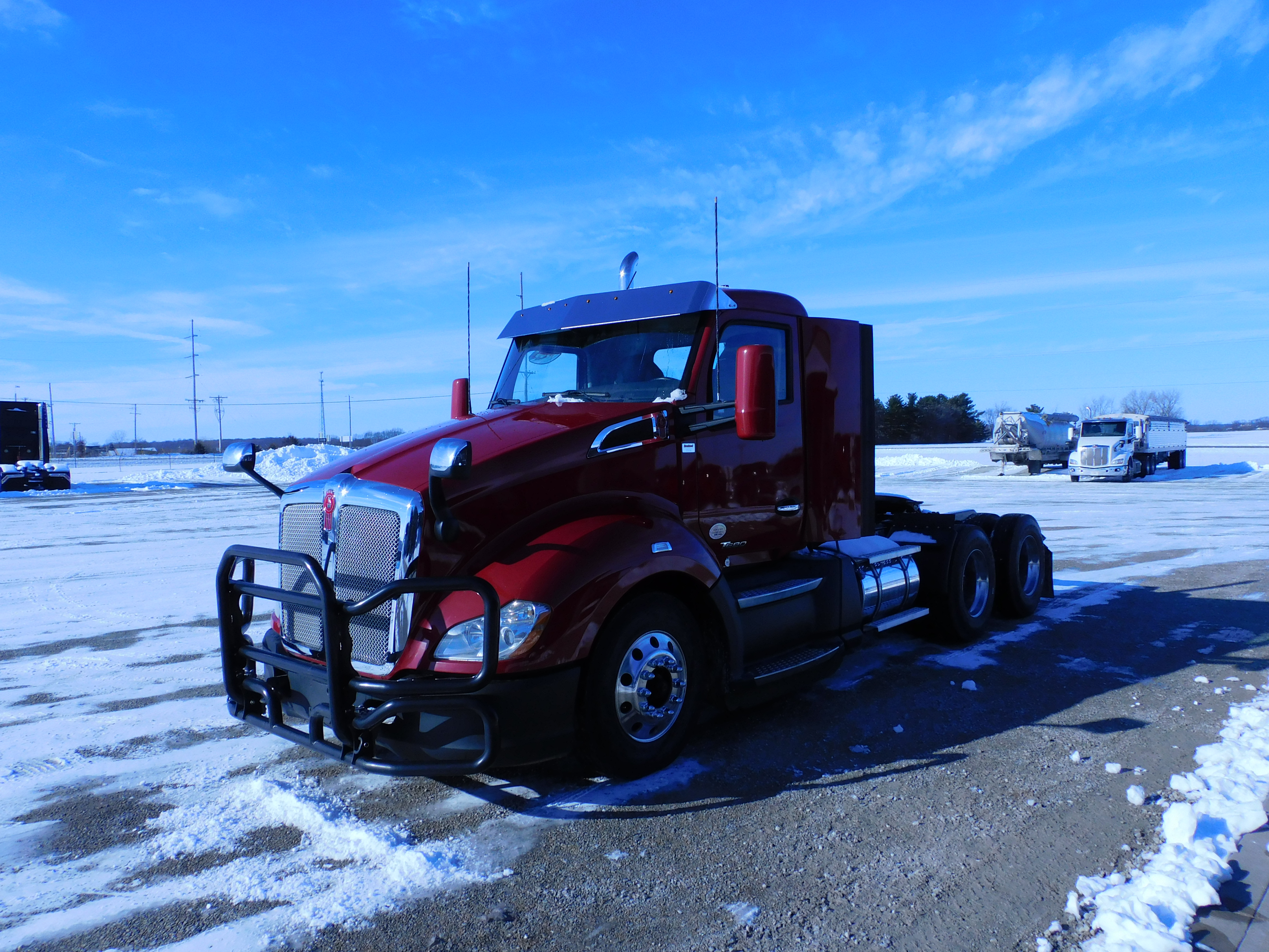 2021 Kenworth T680 Tandem Axle Daycab Tractor, Paccar MX-13 455 Hp Motor, Eaton Endurant 12 Speed Automatic Transmission, Air Ride, 191'' WB, 2.79 RR, (2) Alum 75 Gallon Fuel Tanks, Drum Brakes, (10) Aluminum Wheels On 295/75R22.5 Virgin Tires, Jake, Cruise, AM/FM, PDL, Suspension Dump Valve, Power Locks, Windows, Mirrors/Heated, Air Slide 5'th Wheel, Vertical Exhaust, Tilt/Tele Wheel, (1) A/R Seat, Serviced, Detailed & DOT Inspected.