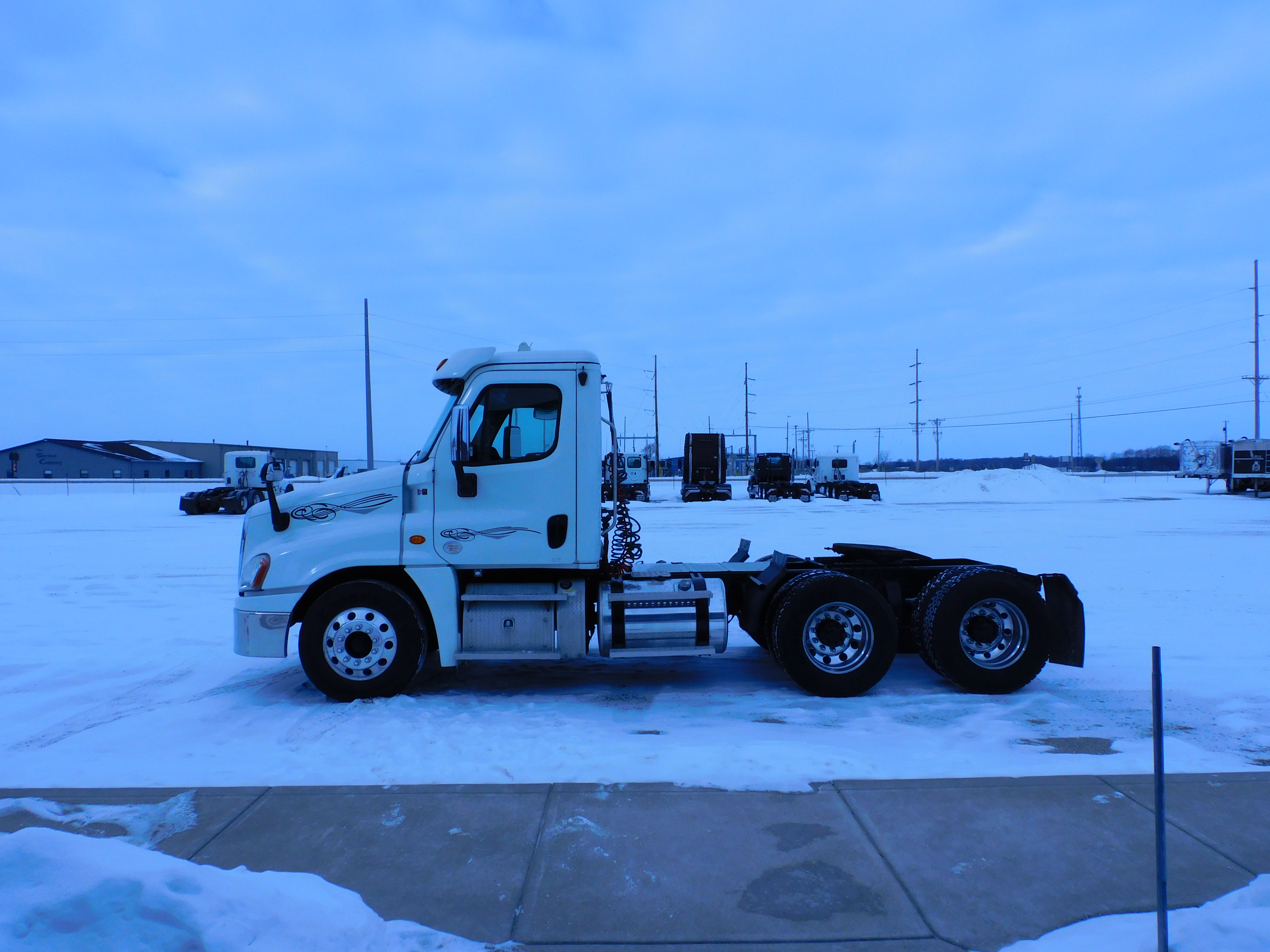 2019 Freightliner Cascadia 125 Tandem Axle Daycab Tractor, Detroit DD13 450 Hp Motor, DT12 Automatic Transmission, Air Ride, 40K RA, 12K FA, 178'' WB, 3.08 RR, (2) 90 & 80 Gallon Fuel Tanks, Drum Brakes, (10) Aluminum Wheels On 295/75R22.5 Tires, Jake, Cruise, AM/FM, PDL, Suspension Dump Valve, Power Locks, Windows, Mirrors/Heated, A/S 5'th Wheel, Down Exhaust, (1) A/R Seat, Chrome Bumper, Serviced, Detailed & DOT Inspected!